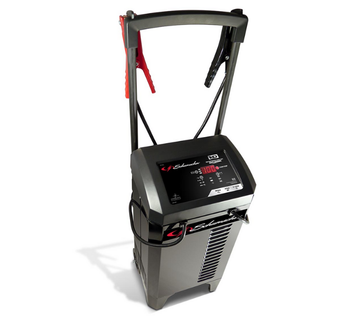 SC1325 Schumacher 250/40/6/2 Amp Cargador - arrancador 6/12 Volt de batería con ruedas. Modo de mantenimiento de carga de 6/2 amperios. Carga rápida de 40 amperios. 250A Arranque del motor. Carga baterías estándar, AGM, Gel y de ciclo profundo. Arranque del motor 250A: lo suficientemente potente para vehículos utilitarios deportivos, camiones y motores grandes. Modo 40A Boost: devuelve la vida rápidamente a las baterías muy descargadas. Comprobador de batería multifunción: para analizar el estado de la batería y el sistema de carga. Controlado por microprocesador: ajusta automáticamente la tasa de amperaje para cargar y mantener las baterías. Carga en varias etapas: para mayor precisión, seguridad y duración de la batería. Monitoreo en modo flotante: mantiene una carga óptima de la batería. Detección automática de voltaje. Protección de conexión inversa. Pantalla digital con desplazamiento: proporciona instrucciones paso a paso para cargar correctamente la batería. Indicadores LED y controles de botón para este uso. Cables de salida de calibre 4: permanecen flexibles en climas fríos. Abrazaderas y cordones en el frente de la unidad. Práctico soporte de abrazadera en el mango. Ruedas compactas para un fácil almacenamiento.